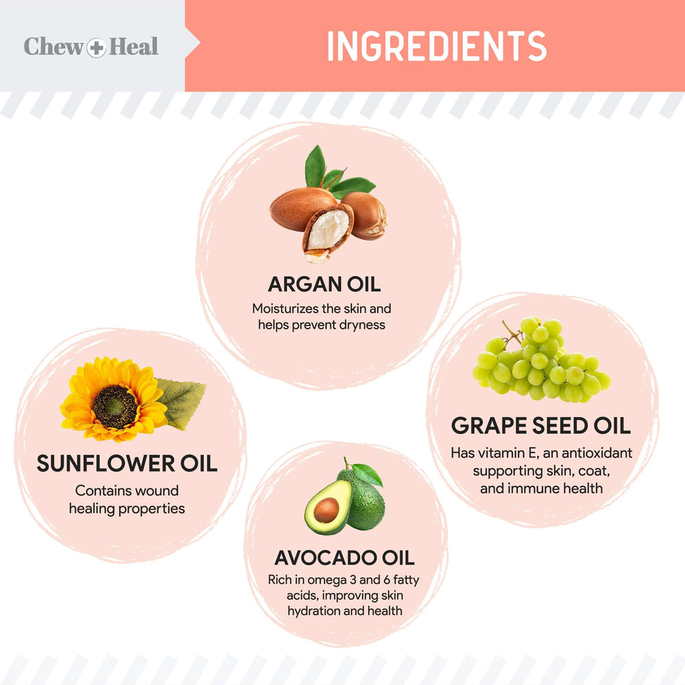 Give your furry friend the relief they need with Chew + Heal Natural Hot Spot Relief Topical Liquid for Dogs, a revolutionary topical treatment that soothes and heals irritated skin. This liquid formula is made with a powerful blend of eight nutrient-rich botanicals, including argan oil, grapeseed oil, and avocado oil, to hydrate, nourish, and protect your pup’s skin. Say goodbye to itching, redness, and discomfort with this fast-absorbing solution that targets hot spots, dry patches, and minor irritations. Made in the USA with only nine natural ingredients, it’s safe for all breeds and sizes and free from harsh chemicals, artificial fragrances, and steroids. Give your pet the natural relief they deserve with this topical liquid!